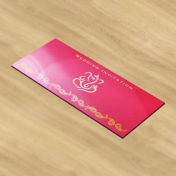 When it comes to Hindu weddings, there is no colour more auspicious then Red. This Red Hindu wedding invite has mandala designs placed around the entire invitation. In the middle of this invite, there is a modern Ganeshji symbol, who is an iconic Hindu god. Ganeshji is also known as the remover of all obstacles.