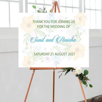 We supply our Wedding welcome signs (also known as ‘welcome to our wedding signs‘) on a 5mm foamex board. The sizes we offer are the following: