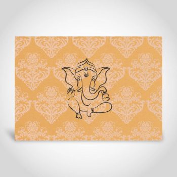Celebrate the sacred union of two souls with our captivating Hindu wedding card, printed on premium white cardstock. A masterpiece that beautifully blends tradition and elegance, it features a gold foiled round floral pattern symbolizing the eternal journey of love. Within this resplendent design, the divine presence of Lord Ganesh shines in glorious gold foiling, bestowing blessings upon the couple’s sacred union. Elegantly personalized with the names of the loving couple foiled in gold at the bottom, this invitation becomes a cherished keepsake.