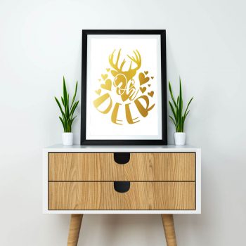 The print will be printed on good quality 320gsm white card and foiled in Gold