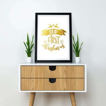 A gold foiled Chrismas wall art – ‘Save Water Drink Cocoa’.