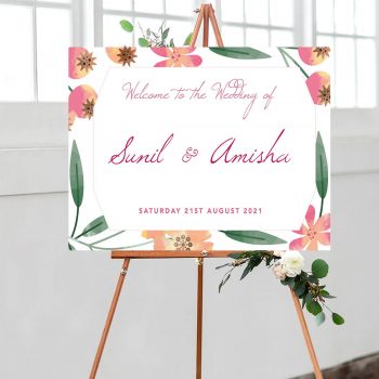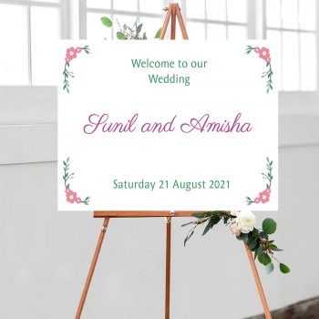 We supply our Wedding welcome signs (also known as ‘welcome to our wedding signs‘) on a 5mm foamex board. The sizes we offer are the following: