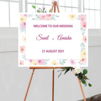 We supply our Wedding welcome signs (also known as ‘welcome to our wedding signs‘) on a 5mm foamex board. The sizes we offer are the following: